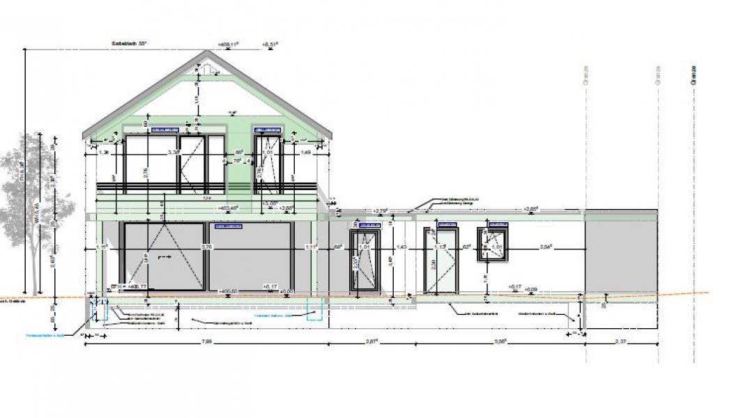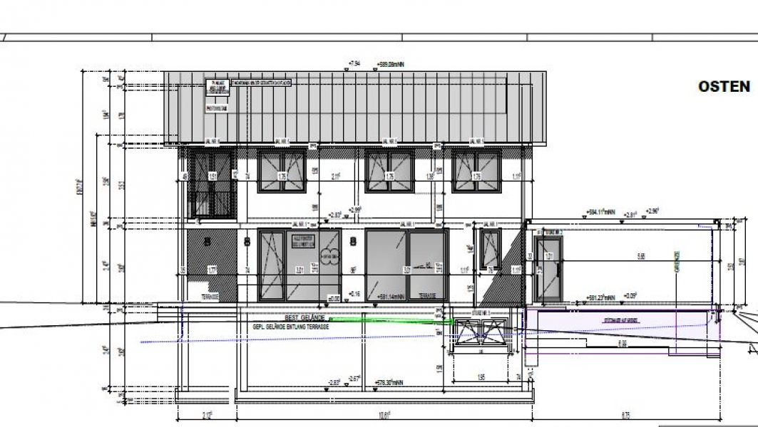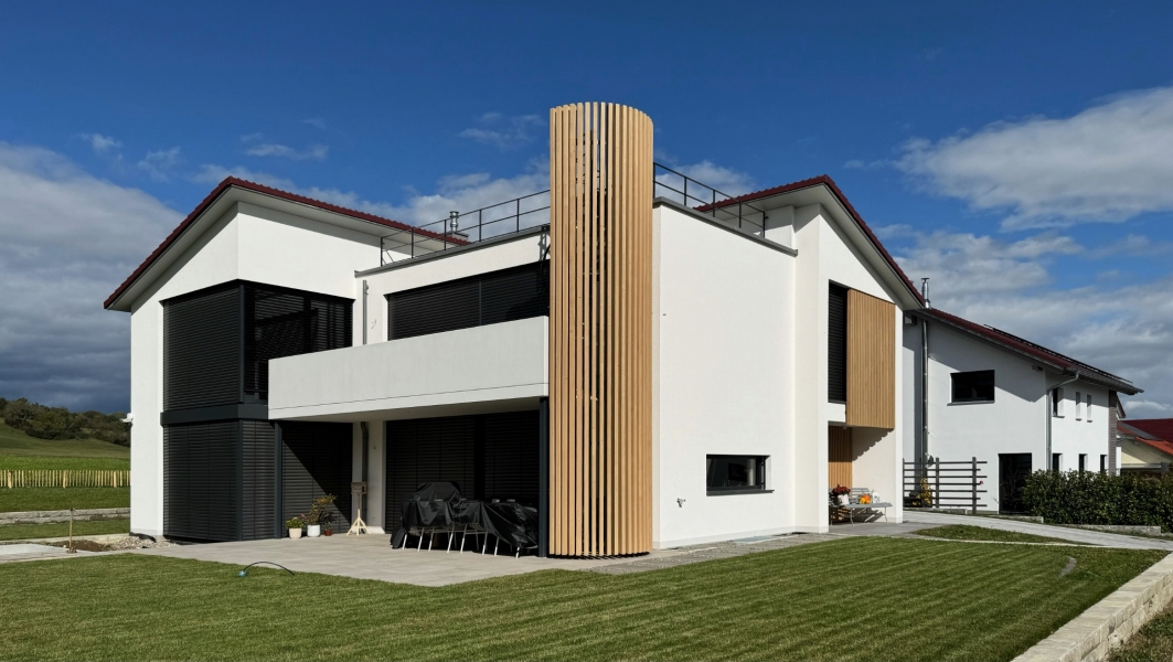 Holzständerbauweise / Treppenhaus Massivbauweise